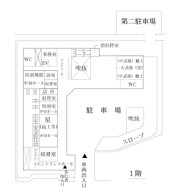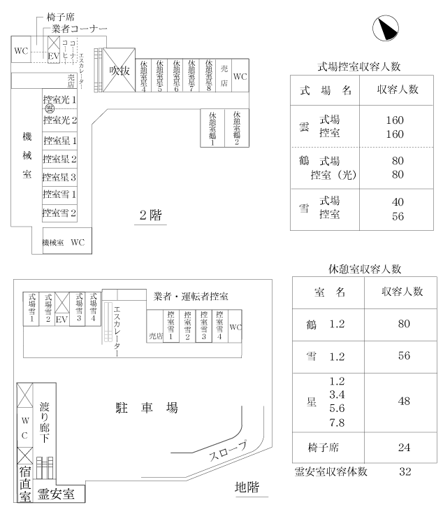 • 施設:火葬炉、大小の式場、控室、休憩室、ロビー、駐車場などを備えた総合斎場
