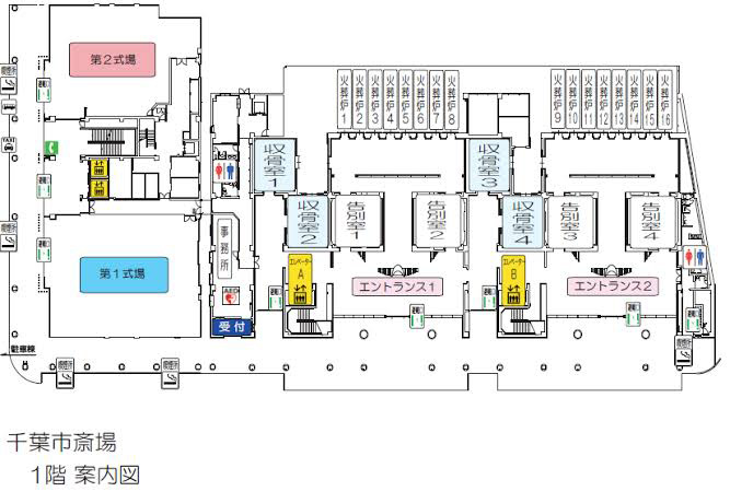 • 施設:式場4室(50-100席)、火葬炉16基、待合室14室、控室、霊安室、駐車場200台